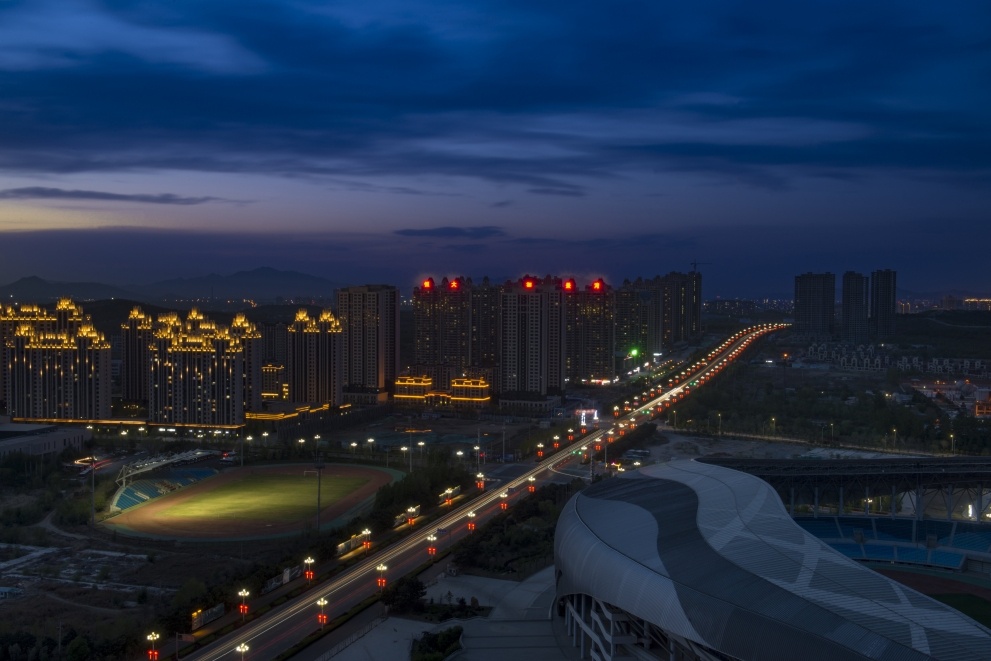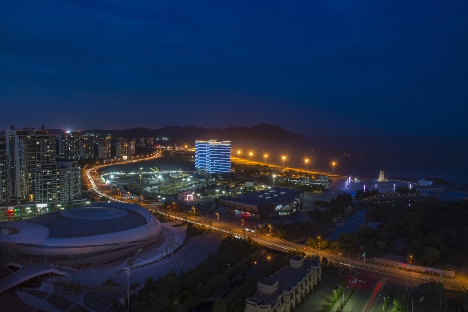 《璀璨濱城》系列攝影作品拍攝于葫蘆島市龍港區中央商務區、龍回頭景區及海辰路,夜色下的龍港燈火璀璨。