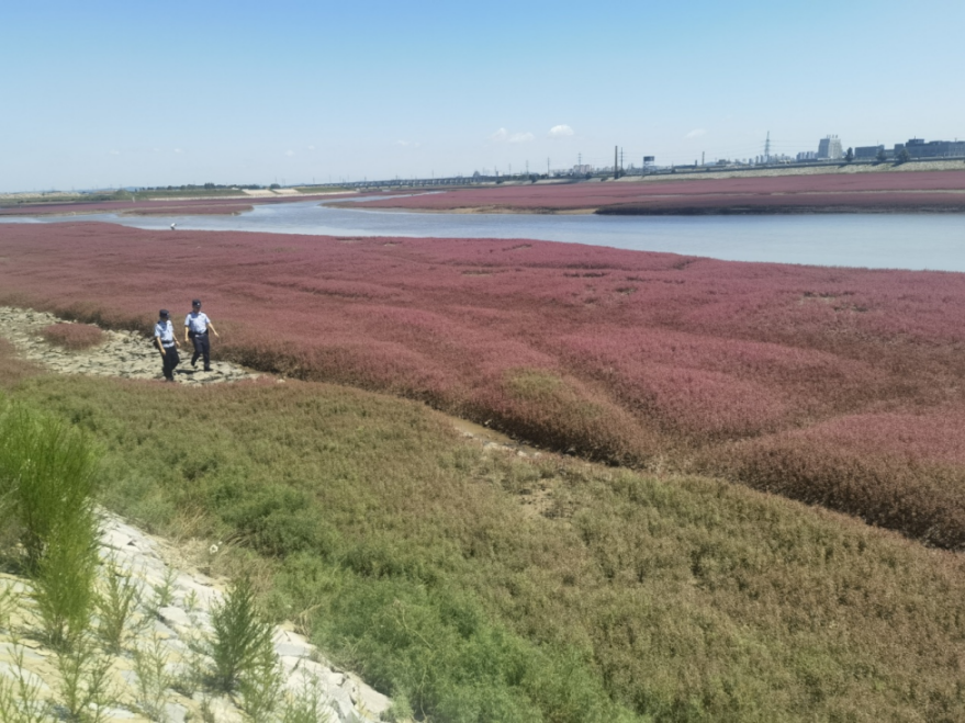 在葫蘆島市打漁山解放路與錦州港交界處,有一處紅海灘。從7月初開始,這里多塊堿蓬草開始泛紅,水流穿越而過,煞是好看。白天,有垂釣者和攝影愛好者來此;傍晚,很多市民來此遛彎。小景自成趣,成為休閑好去處。(作者單位:葫蘆島日報社)