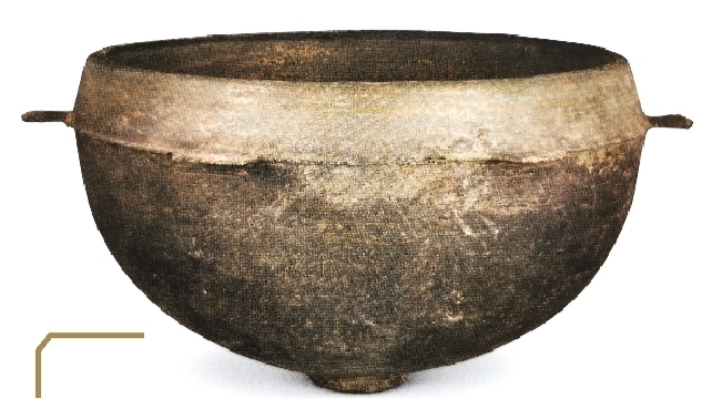金代銅釜 是軍隊或游牧民族使用的炊具,出土于葫蘆島市寺兒堡鄉。與遼代六鋬耳大銅釜(右圖)對比可以看出,金代銅釜繼承了遼代風格,彰顯了當時的冶煉水平,從中還可以分析出當時的軍事、城鎮、人口分布等情況。