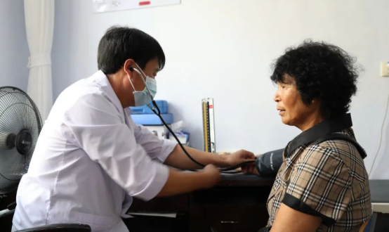 醫(yī)療人員每天定時(shí)為群眾量血壓、檢查身體狀況。盤(pán)錦市委宣傳部供圖