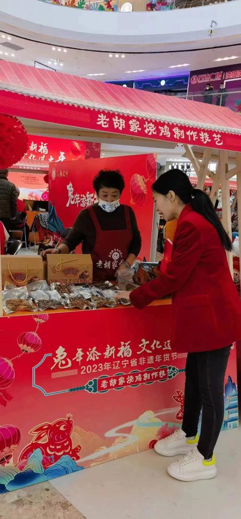 遼寧省級非遺項目老胡家燒雞參加“家住遼河邊 非遺中國年”傳統文化節日志愿服務活動。