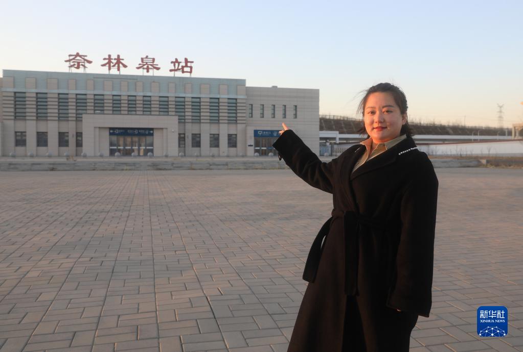 2月20日,王穎在遼寧省朝陽市朝陽縣的奈林皋高鐵站留影。