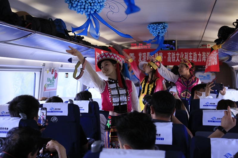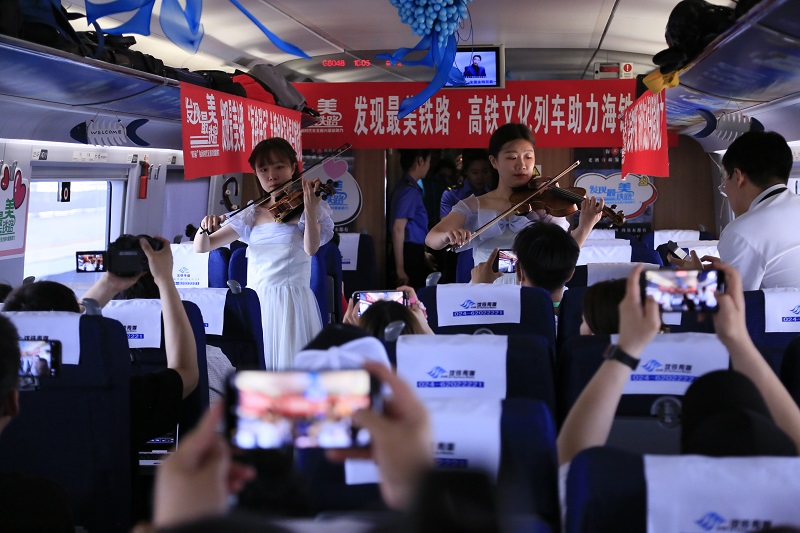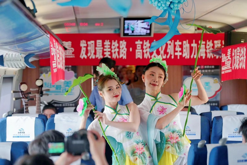 6月27日,中國鐵路沈陽局集團有限公司黨委宣傳部和文聯(lián)組織文藝小分隊20余人登上高鐵列車,開展“發(fā)現(xiàn)最美鐵路·高鐵文化列車助力海鐵聯(lián)運”送文化活動。