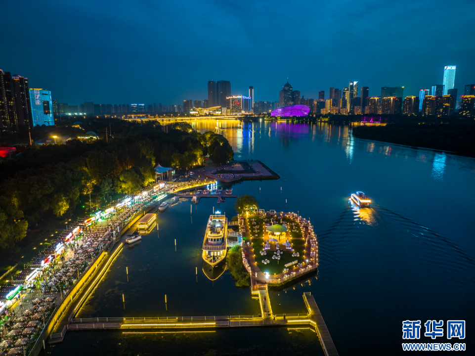 渾河外灘市集開業(yè)以來吸引游客日均5萬人次。除了“逛吃”外,“渾河晚渡”也成為不少市民、游客的選擇。新華網(wǎng)發(fā) 李永宏攝