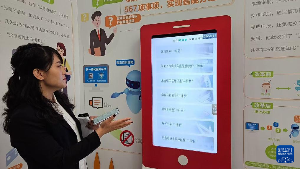 圖為沈陽市營商局工作人員在展示“高效辦成一件事”的具體場景。 新華社記者于也童 攝