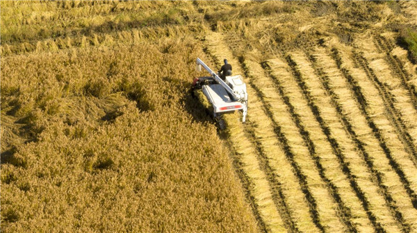 圖為:沈陽市稻米收割