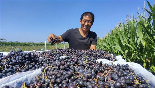 遼陽市嶺秀山不老莓有機種植基地內,一串串黑里透紫的漿果如黑色珍珠般閃耀。遼寧嶺秀山圣匯實業集團有限公司相關負責人介紹,不老莓富含花青素,其加工產品作為保健功能飲品在歐美市場暢銷。近年來,嶺秀山公司引進不老莓項目,經過7年的發展,已形成完整的產業鏈,并帶動周邊農戶就業。