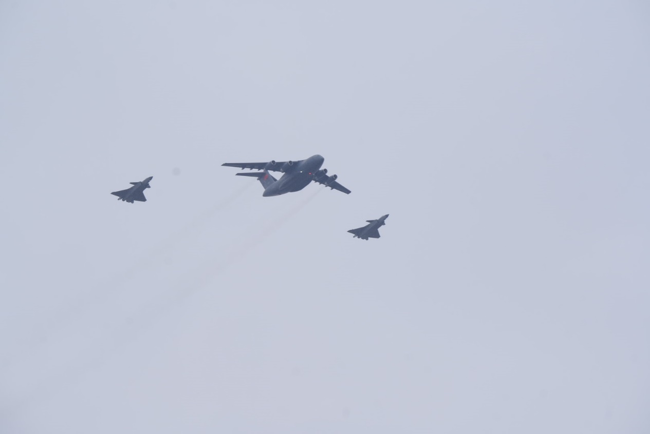 2023年,第十批在韓中國人民志愿軍烈士遺骸回國,“運-20”和兩架護航飛機“殲-20”。
