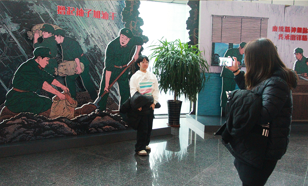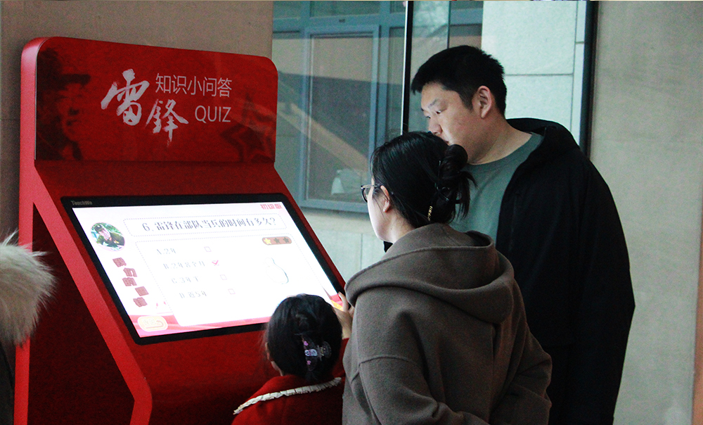 “雷鋒在他的小學畢業典禮上表達了哪三個愿望?”“雷鋒在部隊當兵時間有多久?”……在紀念館一樓出口處,參觀者們意猶未盡,站在答題機前認真思索,在一道道題目中喚醒對雷鋒的記憶。隨后,人們紛紛在畫有雷鋒做好事的場景前打卡留影,彷佛在向雷鋒致敬。