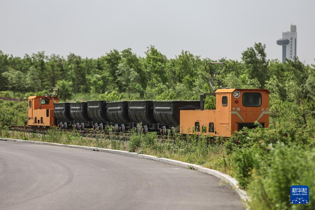 乘車順著撫順西露天礦內的道路盤旋而下,來到礦坑的回填作業區。記者看到,載滿泥土的電機車正通過電鐵線路穿梭。據介紹,經由這條鐵路,撫順東露天礦生產出的渣土及富含營養物質的種植用土依次補充到西露天礦礦坑內,并通過相應的物理或化學措施對土壤進行育肥,栽種各類樹木,讓礦山復綠。