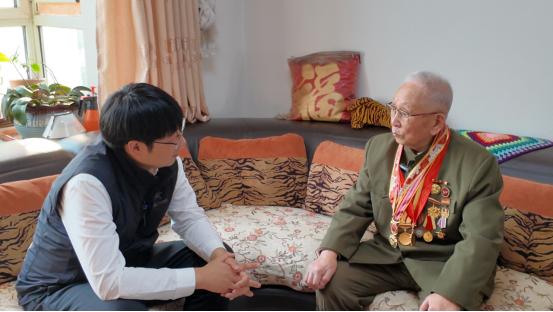 踏入房間的剎那,宋昊洋被眼前的畫面感動著。老人正坐在客廳里靜靜地等候,陽光穿過窗戶灑滿老人花白的頭發(fā)。“這個畫面太美好了,這不正是無數(shù)志愿軍先烈用生命守護(hù)的歲月靜好嗎?非常有幸能看到這樣美好的場景。”宋昊洋說。